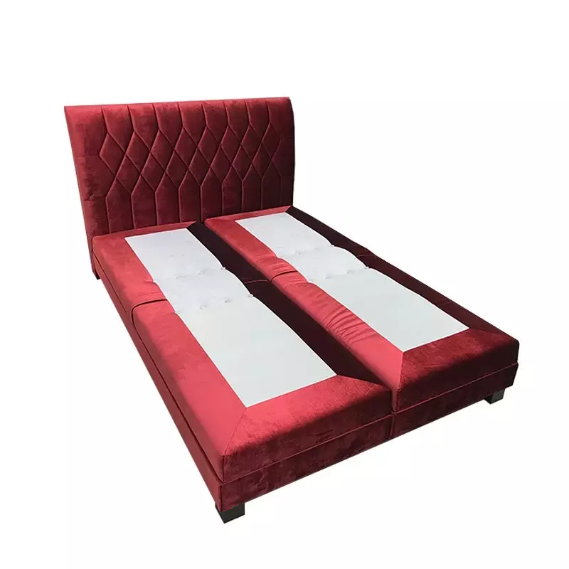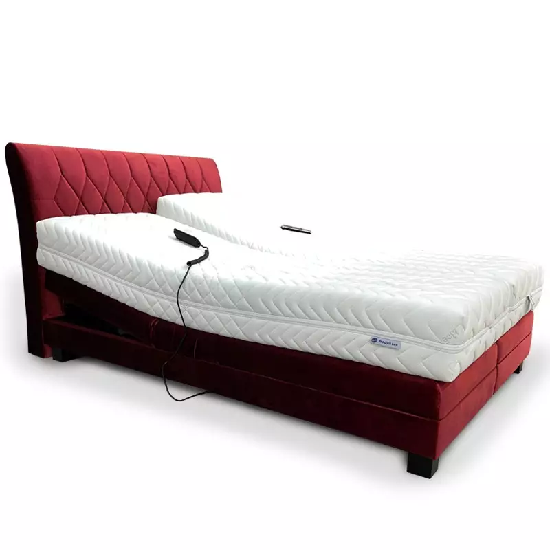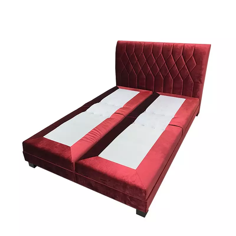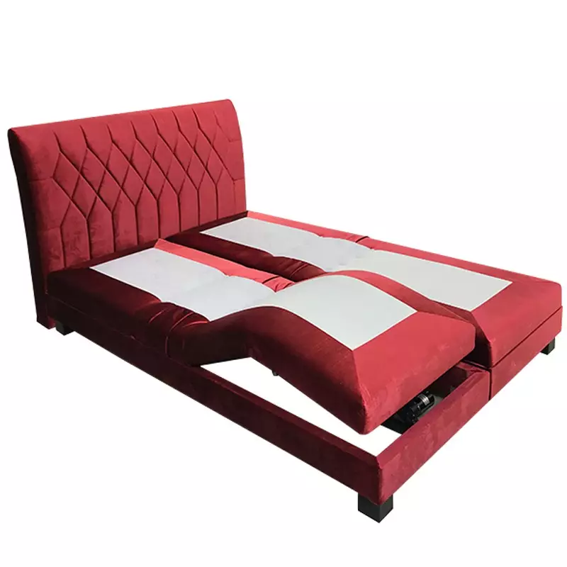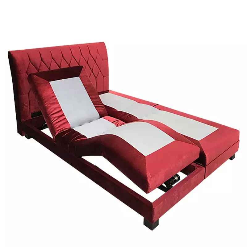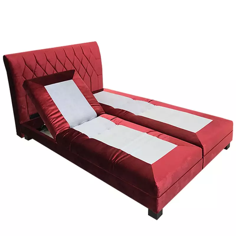 This luxury double bed frame features a smooth electronic reclining system that allows independent control of the head and foot sections. Customers can choose between a standard wired remote, a wireless controller, or mobile app operation for ultimate convenience.