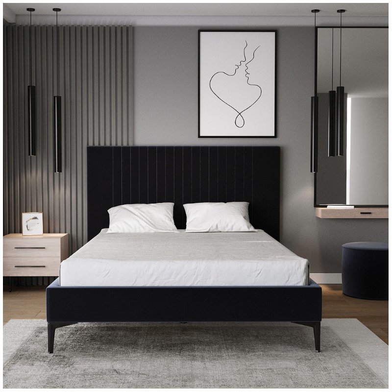The Upholstered Bed Frame 41 is a modern, custom-designed bed that combines minimalist elegance with distinctive detailing. Its simple frame and high headboard with eye-catching diagonal stitching create a unique composition, making it ideal for both classic and contemporary bedrooms.
