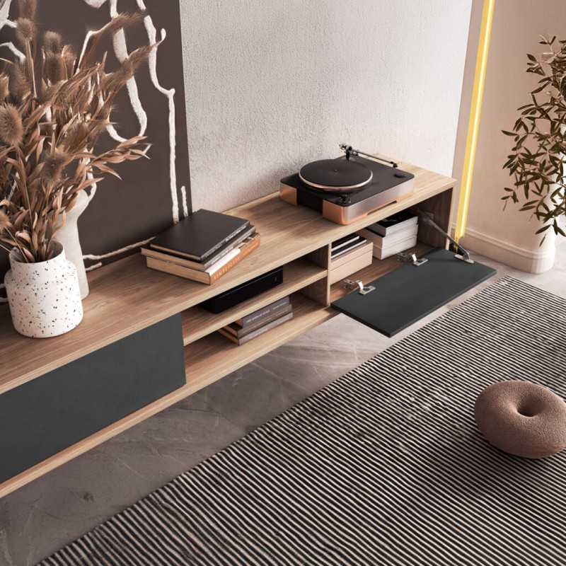 Available in three configurations and a selection of colour variants, the Frida is designed to meet a variety of layout and interior design needs. Its wall-mounted, floating design adds a minimalist aesthetic while maximizing floor space—perfect for smaller living rooms or those seeking a clean, modern look.