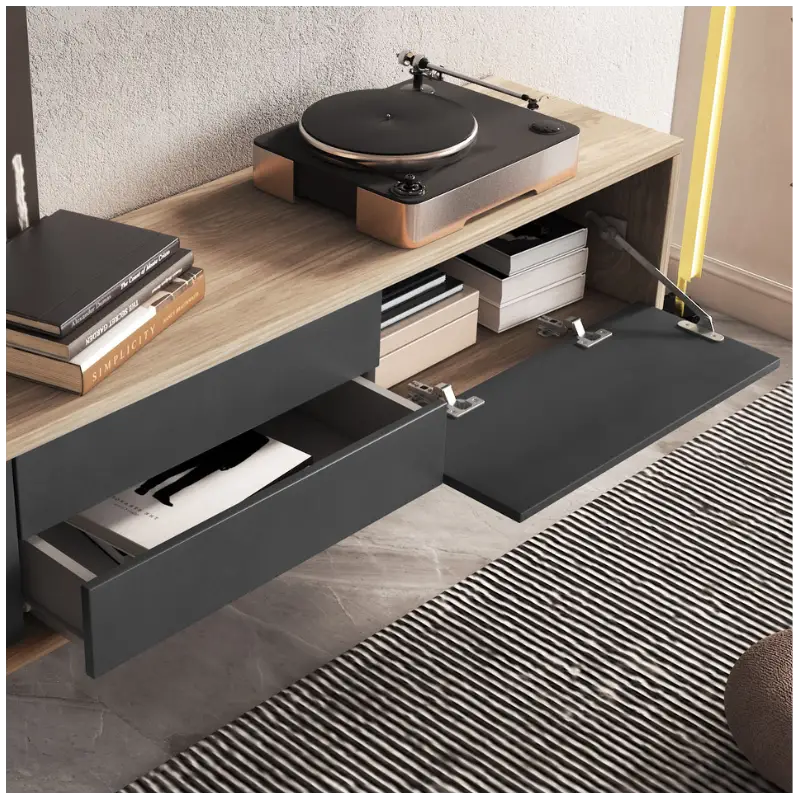 Available in three configurations—including a 2-door and 2-drawer version—and a selection of colour variants, the Frida is designed to meet a variety of layout and interior design needs. Its wall-mounted, floating design adds a minimalist aesthetic while maximizing floor space—perfect for smaller living rooms or those seeking a clean, modern look.