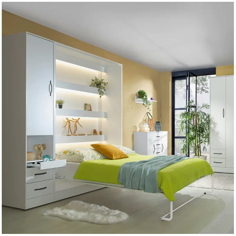The Perfect – Vertical Wall Bed White 140cm is a premium space-saving bed that combines modern style, exceptional comfort, and practical functionality. Perfect for small apartments, studio flats, guest rooms, and multifunctional spaces, this wall bed (also known as a Murphy bed, fold-down bed, or pull-down bed) is designed for both young people and adults who value a restful night’s sleep and efficient use of space.