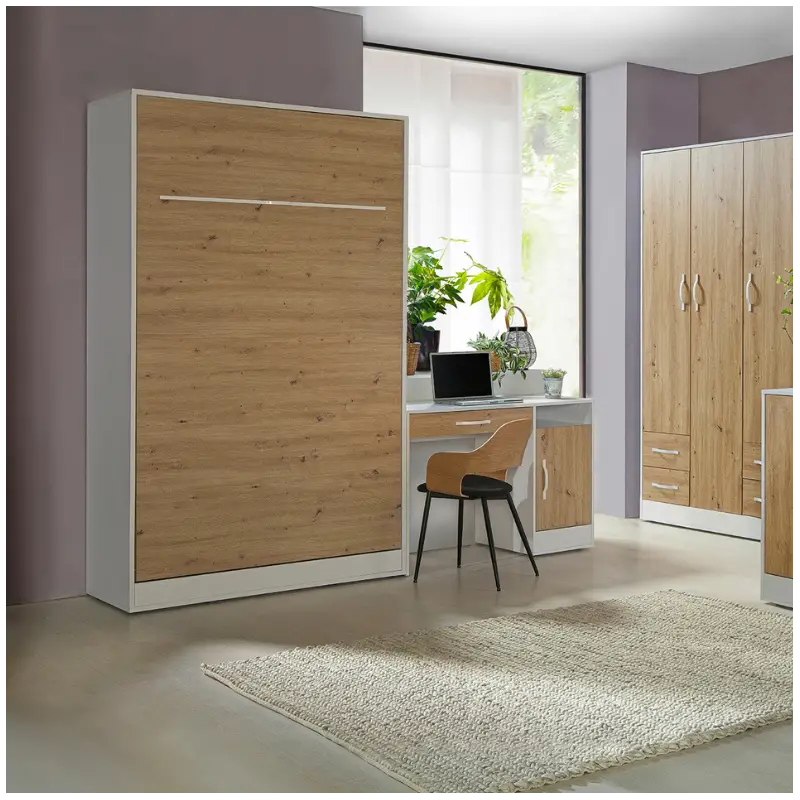 The Perfect- Vertical Wall Bed Oak 120cm is a premium space-saving bed that combines modern style, exceptional comfort, and practical functionality. Perfect for small apartments, studio flats, guest rooms, and multifunctional spaces, this wall bed (also known as a Murphy bed, fold-down bed, or pull-down bed) is designed for both young people and adults who value a restful night’s sleep and efficient use of space.