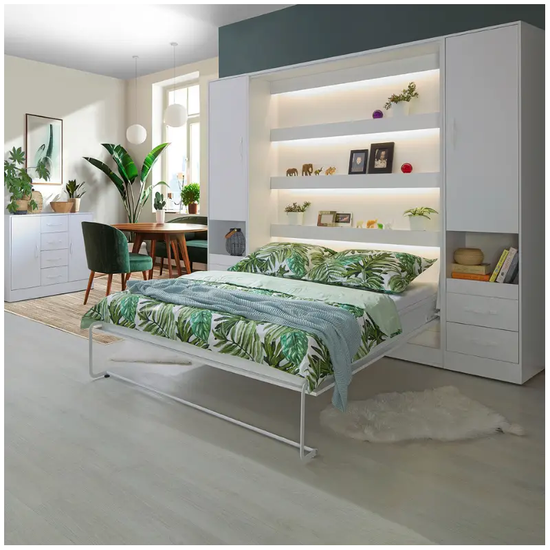 The Perfect Collection offers a variety of wall beds in multiple sizes that seamlessly complement our wardrobes and cabinets. Enhance your space with matching storage solutions, including wide and narrow wardrobes, chests of drawers, desks, shelves, and bedside tables. These thoughtfully designed pieces help keep your room organized, clutter-free, and beautifully coordinated.