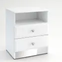 Elevate your bedroom décor with the Glamour Bedside Table. This stylish white bedside table features a sparkling crystal handle that adds a touch of luxury and sophistication to any room. Perfect for modern and contemporary bedrooms, it provides a practical storage solution while enhancing the overall aesthetic of your space.