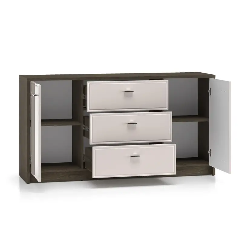 The Avante 04 Sideboard is a spacious and elegant storage solution for modern homes. Finished in a stylish oak and cashmere colour combination, this 2 door 3 drawer sideboard offers the perfect balance of practicality and contemporary design.