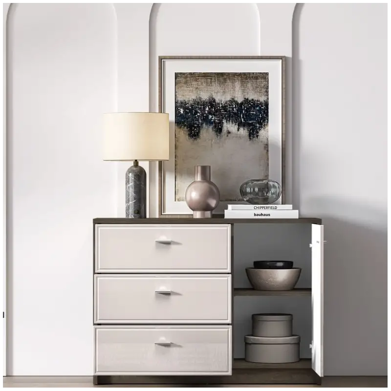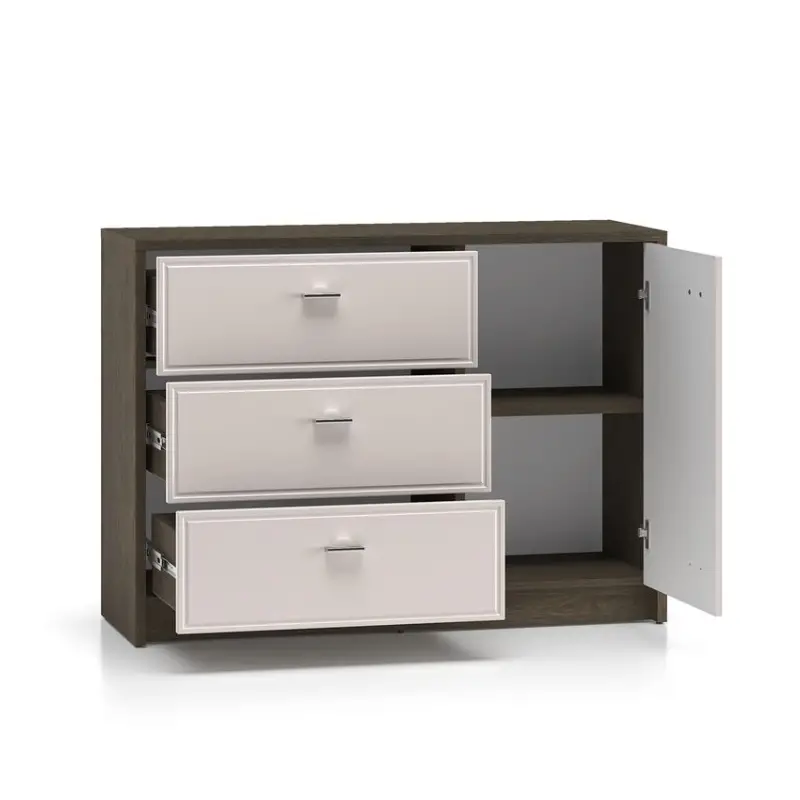 • Ample Storage: 1 door with 2 compartments + 3 deep drawers.