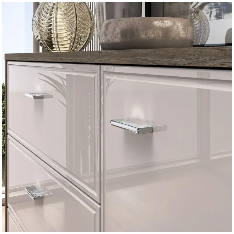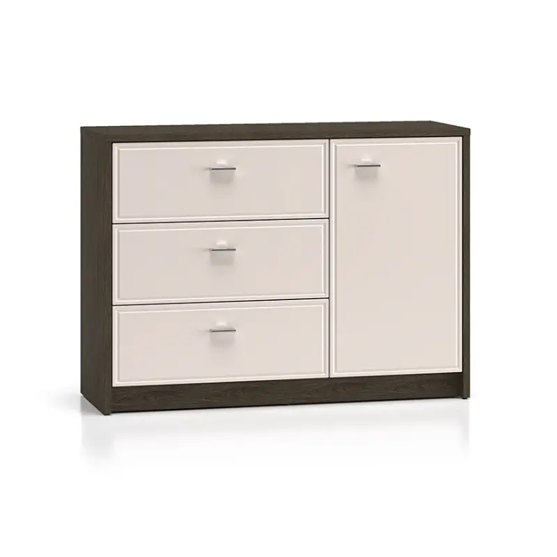 The Avante 05 Sideboard is a compact yet highly functional storage solution, finished in a stylish oak and cashmere colour combination. With its smart design, this 1 door 3 drawer sideboard provides the perfect balance of elegance and practicality for modern homes.