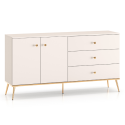 The Selgin 03 sideboard 2 doors 3 drawers in Cashmere is the perfect combination of style and functionality. Behind the two doors, a central shelf divides the space into two spacious compartments, ideal for storing clothes, towels, or bed linens. The sideboard also features four deep drawers, offering ample storage for documents, tablecloths, or other household textiles.