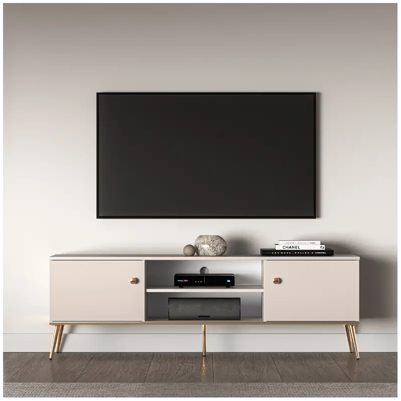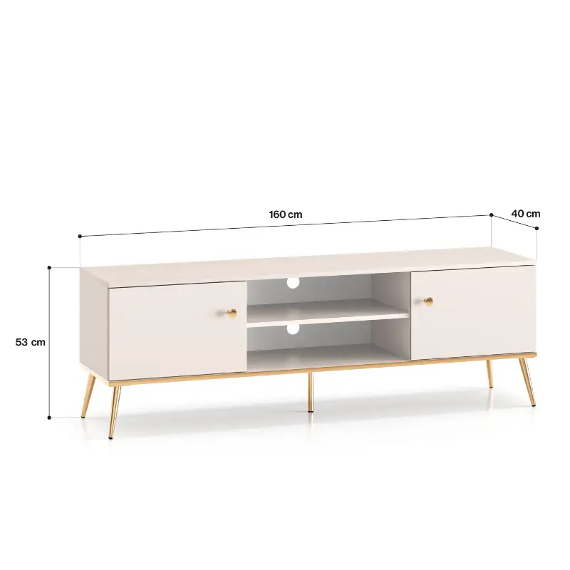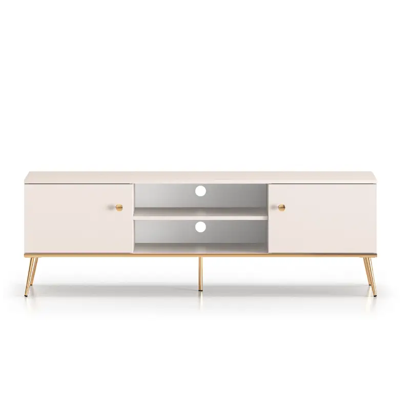 The Selgin 05 TV unit is a perfect modern TV unit in Cashmere for your living room. Featuring two closed compartments for ample storage and open shelves with a wide top surface, it helps you neatly organize all your multimedia equipment. This stylish TV bench combines practical functionality with elegant design.