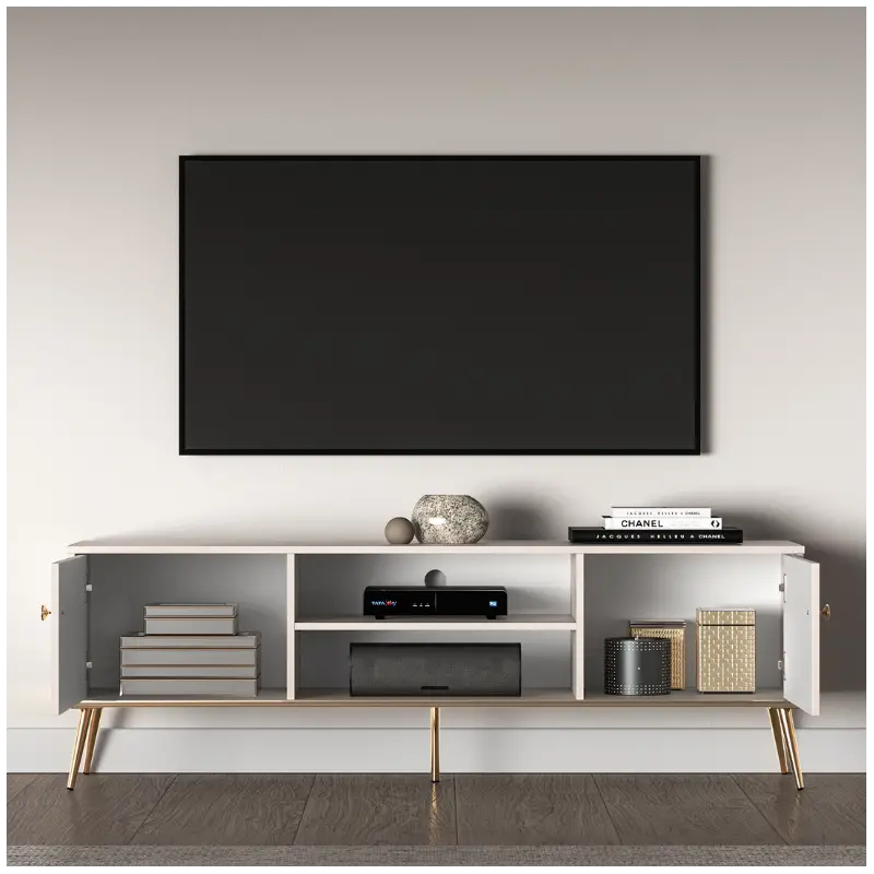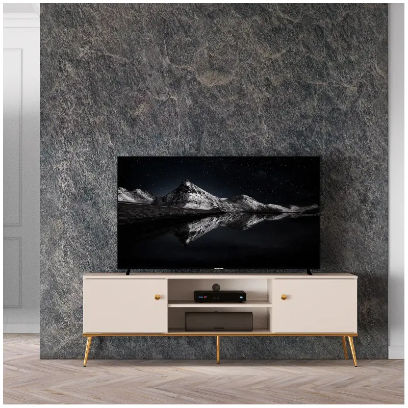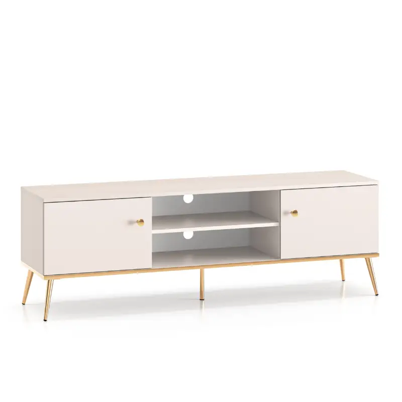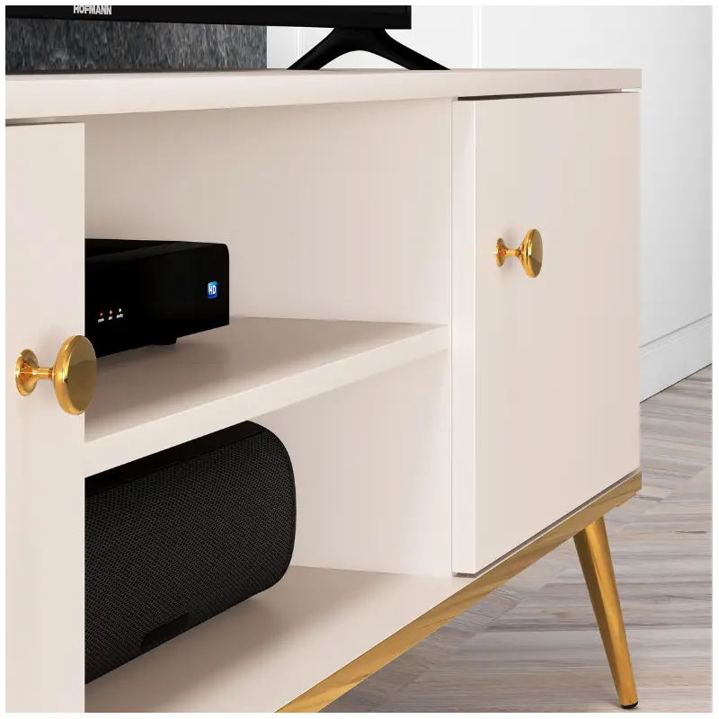 This modern TV unit in Cashmere is ideal for living room storage in Ireland. Its combination of spacious compartments, open shelves, and durable construction makes it a perfect choice for organizing your TV, media devices, and decorative items.