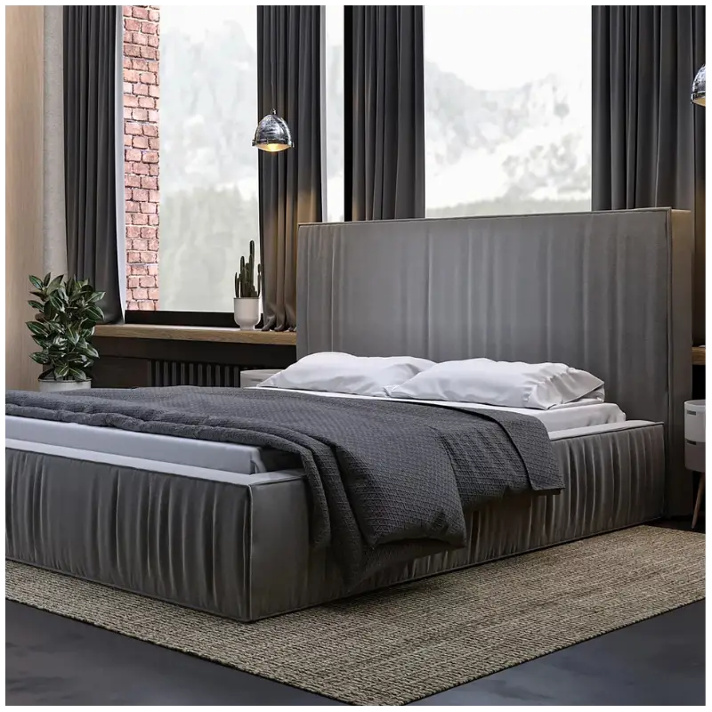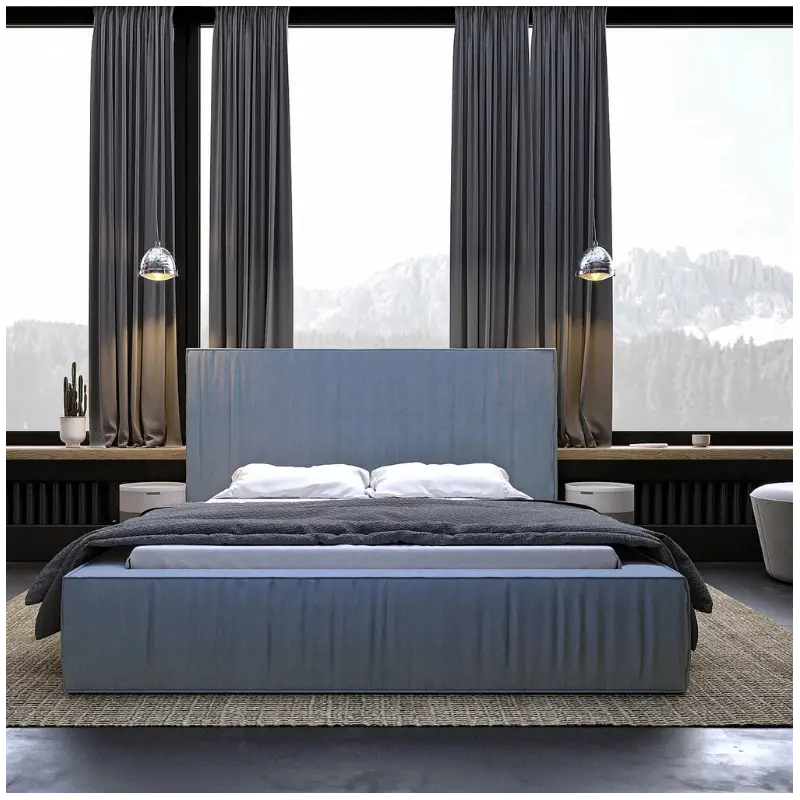 Upgrade your bedroom with this elegant ottoman bed, offering both style and practicality. This upholstered bed frame in Ireland features a simple, classic design, with a headboard and frame enhanced by elegant pleating, creating a visually striking composition. Perfect for large, spacious bedrooms, this king size bed frame combines luxury and exclusive design with the functionality of a built-in storage solution. The frame is crafted from high-quality board and upholstered in premium fabric, available in a wide range of colors. Contact our team to explore all available colors and create your perfect custom bed.