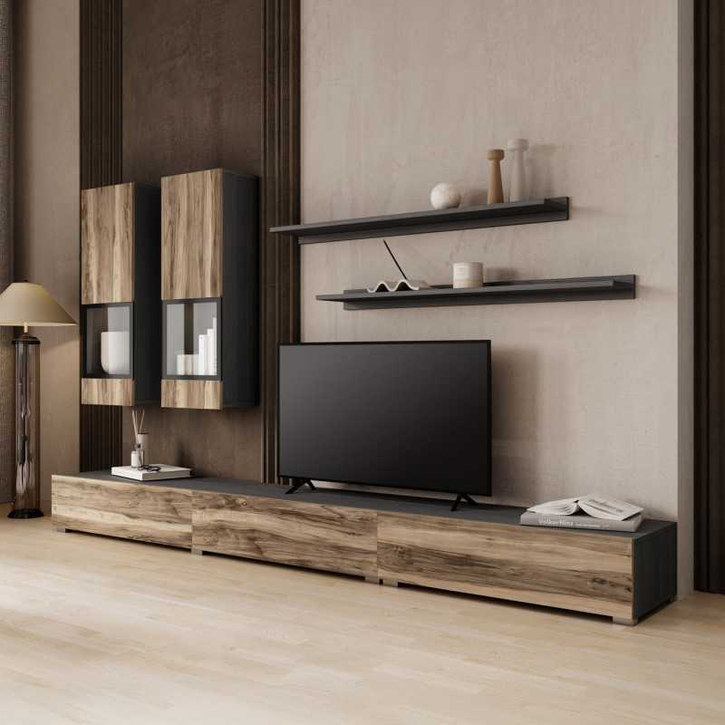 BAROS WALL UNIT OAK AND BLACK | Living Room Wall Units