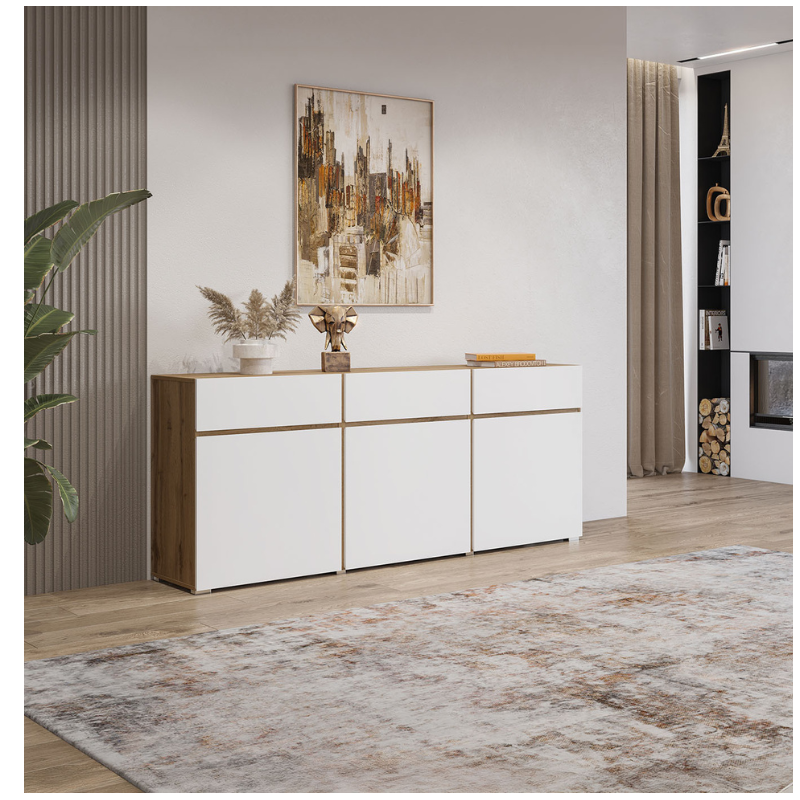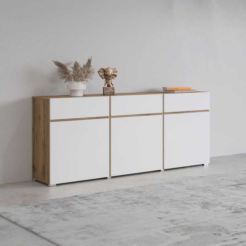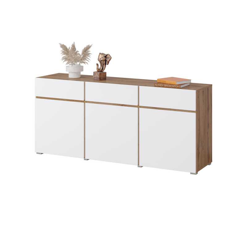 CROSS Sideboard White and Oak with 3 door 3 drawer