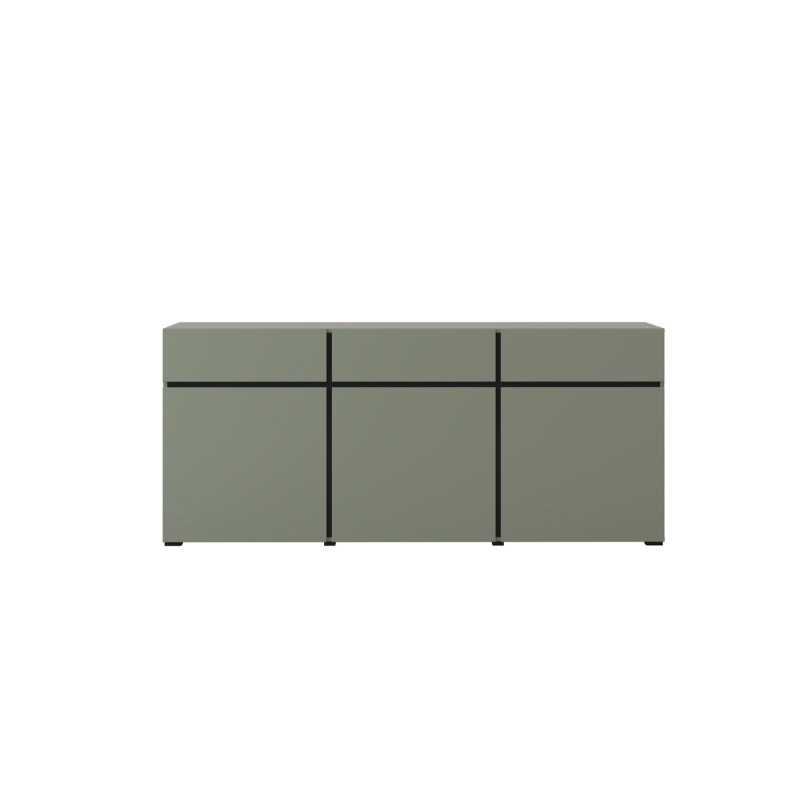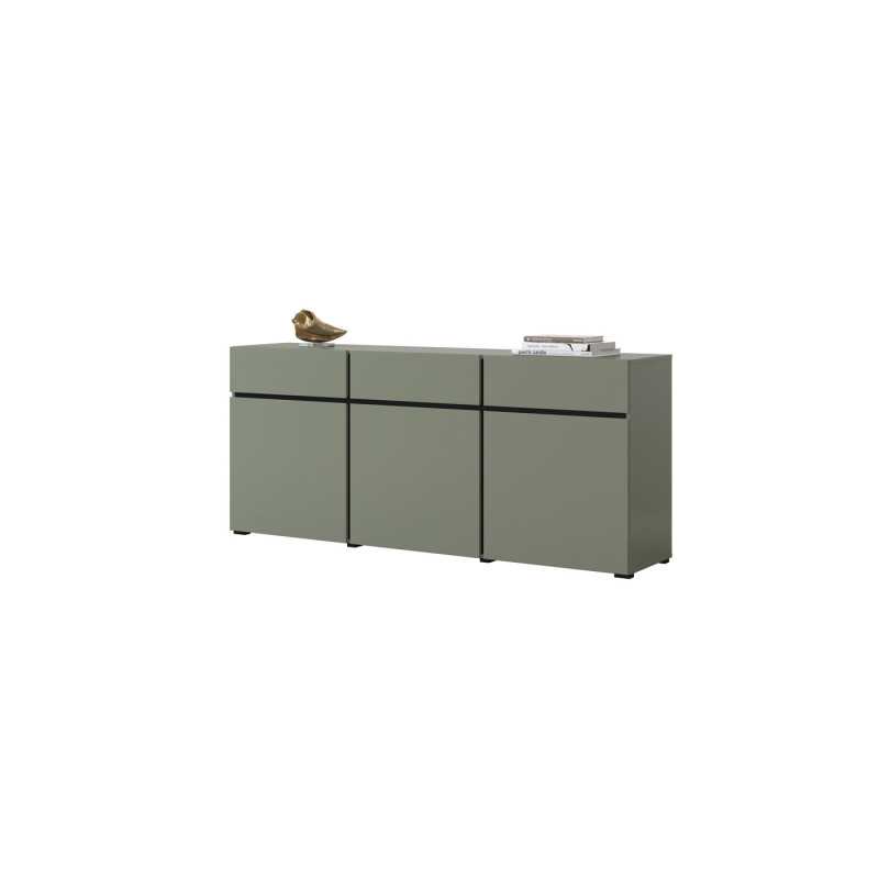 Part of the CROSS Collection, this sideboard is defined by its simplicity and clean lines. Available in three stylish finishes – classic white, warm Wotan oak, and modern Green – Black. The modern Green – Black finish features a rich, dark green tone with subtle onyx black edging, creating a bold and contemporary look. Its sophisticated finish adds warmth and elegance to any room, making it perfect for modern and minimalist interiors seeking a statement piece.