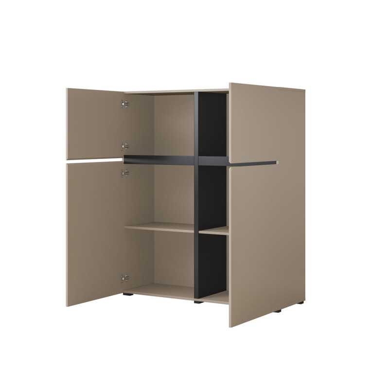 The CROSS Sideboard is designed for modern interiors and minimalist spaces. Its wide range of closed storage units ensures excellent space organisation, keeping your living area neat while maintaining a sleek appearance. Whether storing crockery, books, or decorative items, this sideboard combines practicality with timeless style.