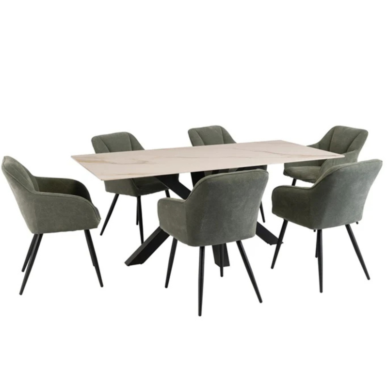 Upgrade your kitchen or dining area with the Hugo Kitchen Chair, a modern kitchen chair upholstered in soft-touch textured fabric with a beautiful mint green finish. Featuring sleek black powder-coated legs, this kitchen chair offers comfort, durability, and contemporary style. Perfect for pairing with our Hugo or Cora Dining Tables (see images).