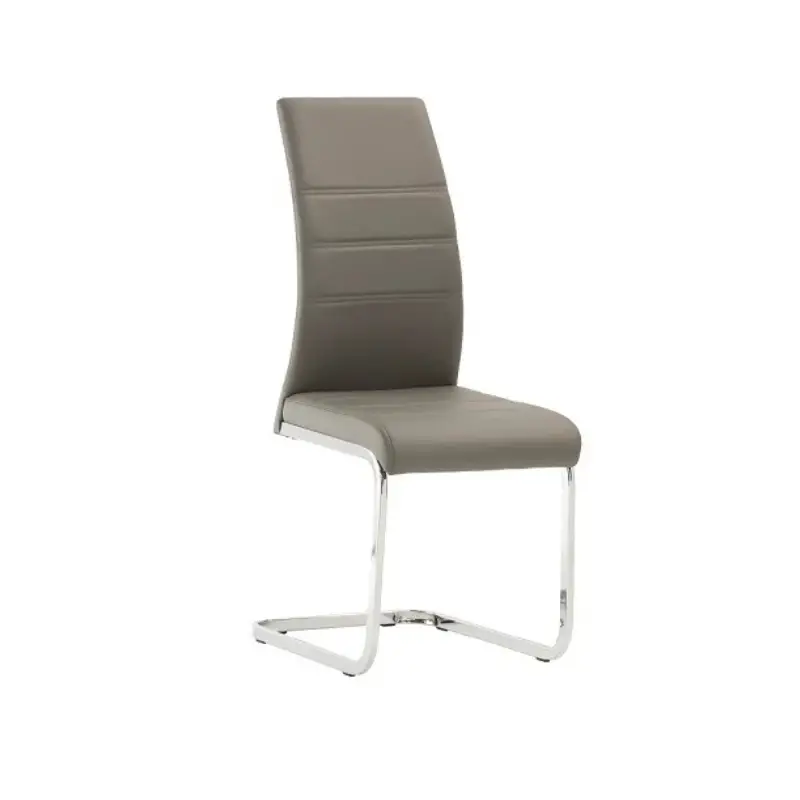 Available in grey, cappuccino, or taupe, this faux leather dining chair complements a variety of dining tables and interiors. Perfect for home dining rooms, kitchens, or stylish commercial spaces, it offers comfort and contemporary style in one.