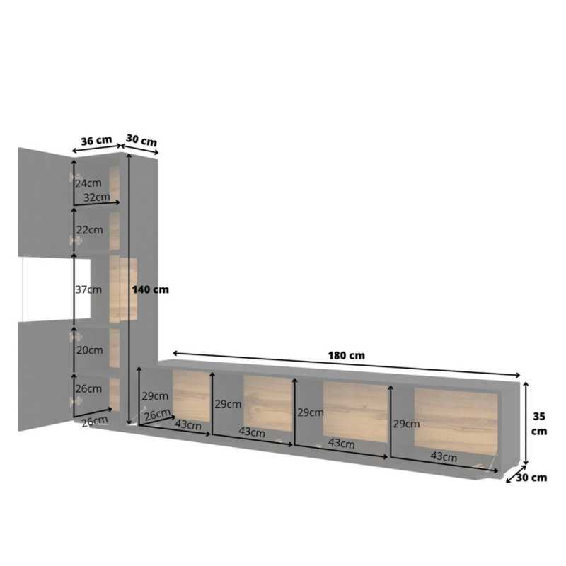 • Width: TV Unit 180 cm | Display Cabinet 36 cm