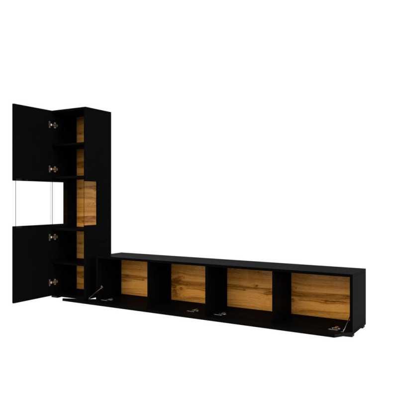 Looking for modern wall units in Ireland? The AVA Wall Unit Collection combines a unique look with high functionality. This stylish TV wall unit offers a wide range of modular elements, allowing flexible interior arrangements tailored to individual needs and preferences. Optional LED lighting enhances the modern style and highlights the distinctive character of the collection.