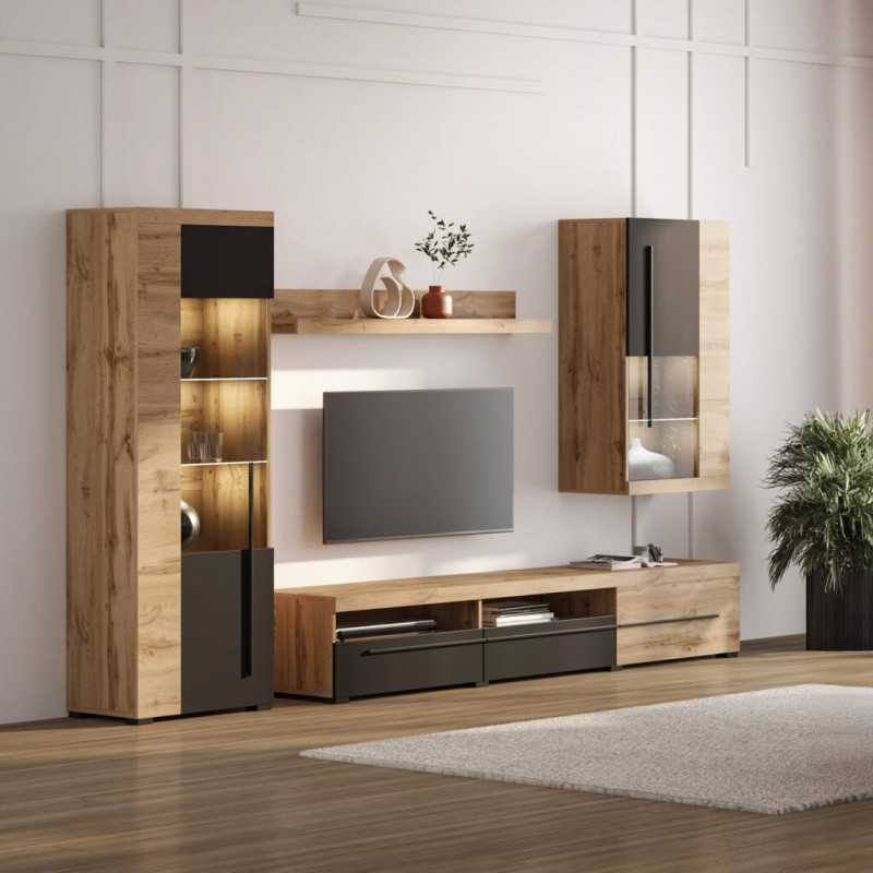 Looking for modern wall units in Ireland? The ROGER wall unit collection is the perfect solution for those who appreciate functional and stylish interiors. With a wide range of coordinated furniture, everyone can find something that perfectly suits their style and needs. This tv wall unit is available in a unique color combination that blends elegance with versatility, making it ideal for both classic and contemporary spaces.
