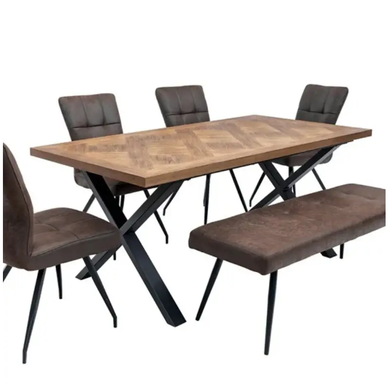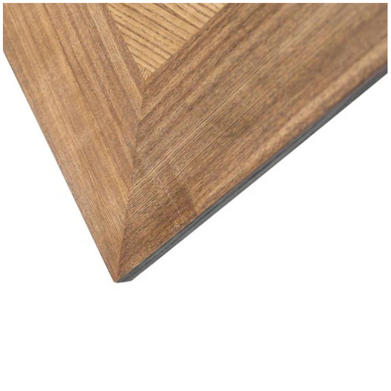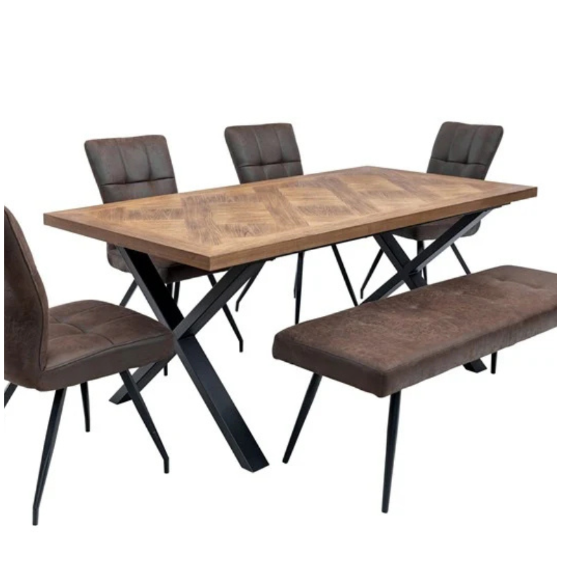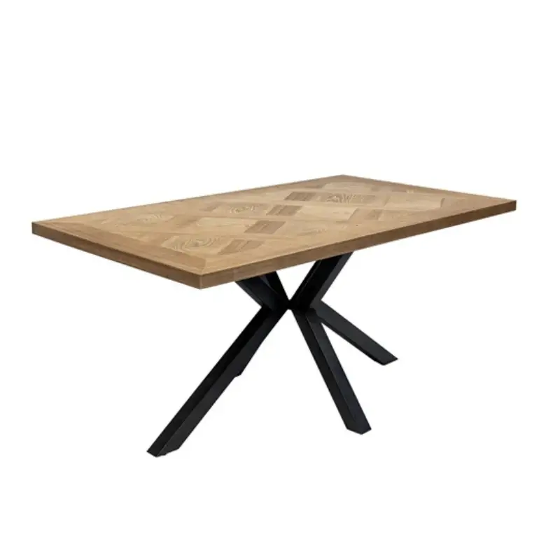 Add a modern touch to your dining room with the Eden Medium Ash Veneer Fixed Dining Table. Featuring a herringbone top inlay crafted from ash veneer, this dining table combines elegance and durability. The black metal X-frame base adds a contemporary industrial feel, making it a stylish centerpiece for any dining space.