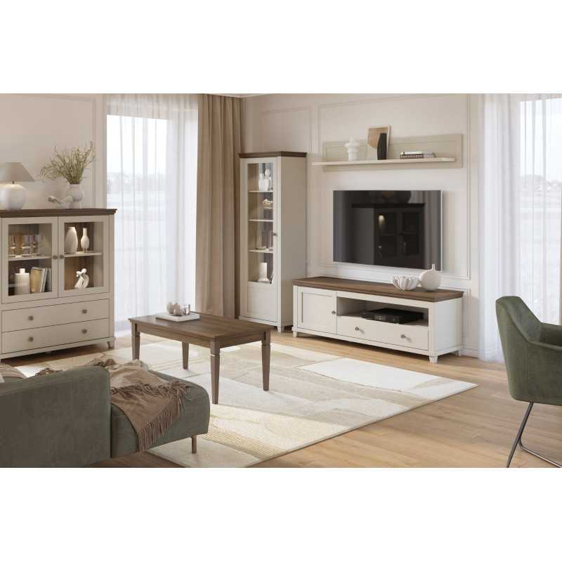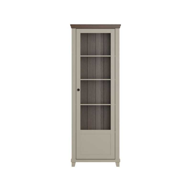 The Eva Display Cabinet is the perfect addition to any classic or contemporary interior in Ireland. Featuring a bright light beige finish combined with traditional light wood, this light beige display cabinet brings a fresh and elegant look to living rooms, dining rooms, and kitchens. The series is also available in forest green with Ribbeck Oak top surfaces for a unique alternative.