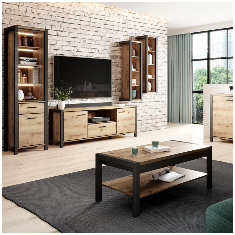 Part of the AKTIV Furniture Collection, this modern TV unit combines raw industrial aesthetics with practical, user-friendly features. The multi-element structure allows you to customize your arrangement, making it ideal for both compact and spacious interiors.