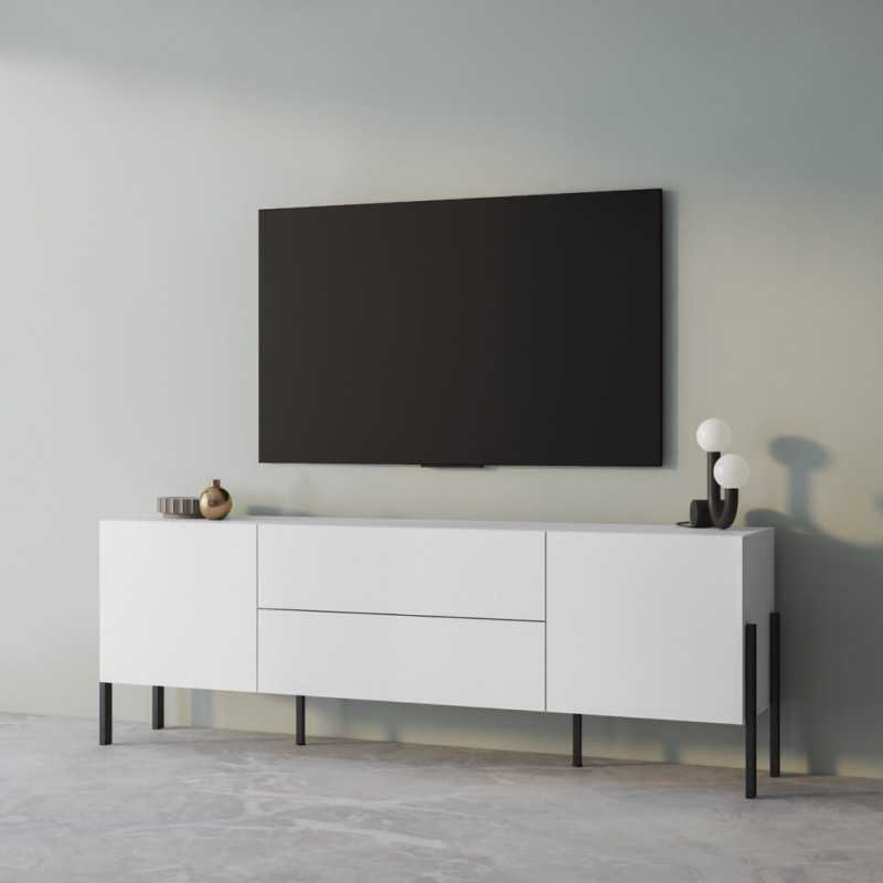 This modern TV unit in Ireland features 2 doors and 2 drawers, providing ample storage for your TV, consoles, books, and decorative accessories. Its smart design ensures your living area stays neat and organized while maintaining a sleek, contemporary aesthetic. The JUKON TV stand blends functionality with style, ideal for both compact and spacious rooms.