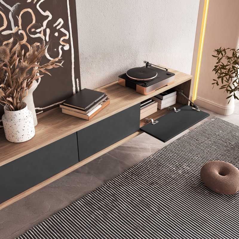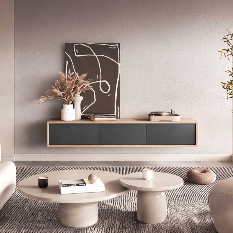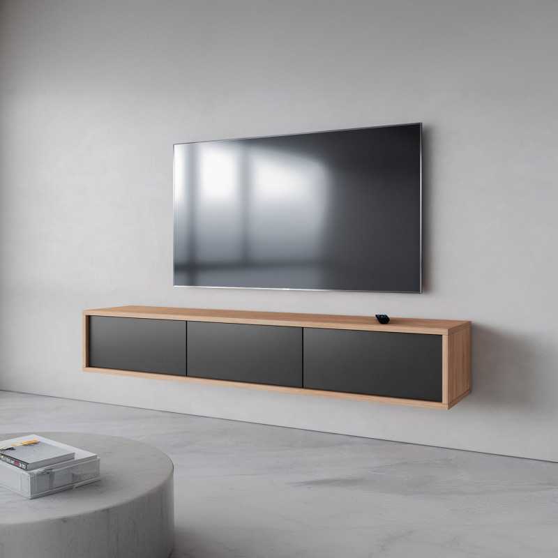 Frida 38– Modern Floating TV Unit 180cm 3 door in Oak/ Anthracite Finish