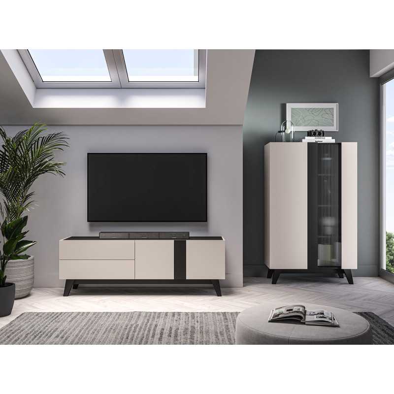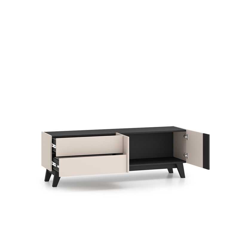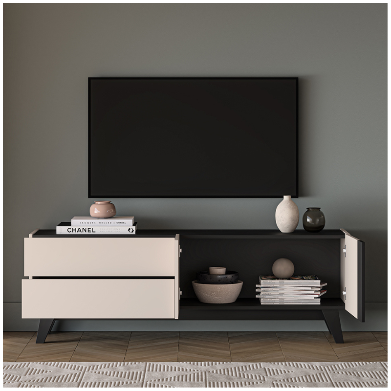 Enhance your living space with the Modern TV Unit in Cashmere and Black – a perfect balance of sleek design, functionality, and timeless elegance. This stylish TV unit brings a touch of sophistication to your interior while offering practical storage solutions for your entertainment essentials.