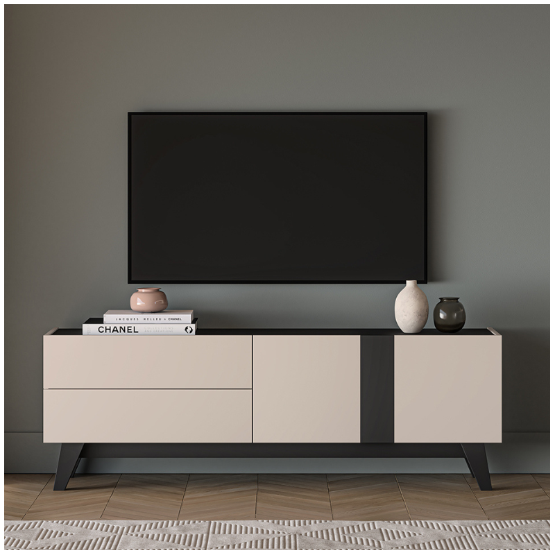 This modern TV unit is the perfect combination of form and function. Whether you're creating a minimalist entertainment area or a cozy family room, the Cashmere + Black TV Unit delivers style, quality, and practicality in one elegant design.