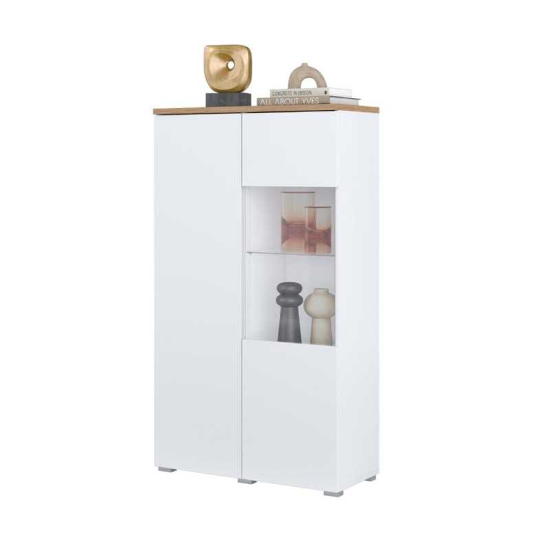 Modo Display Cabinet – Modern White & Mauvella Oak Display Unit