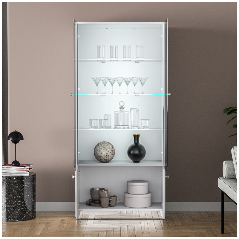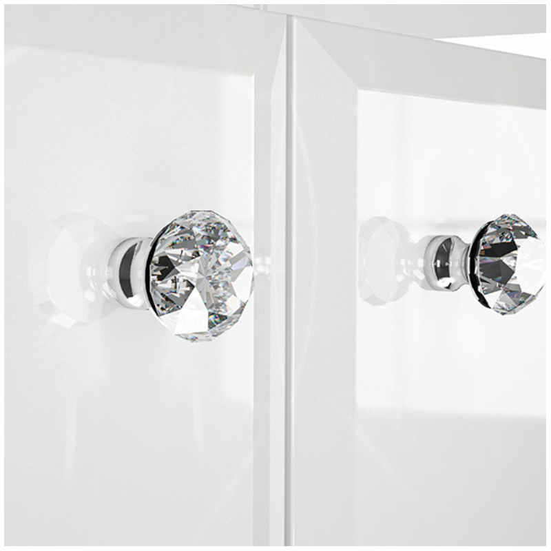 The high-gloss white finish reflects light and visually opens up your room, while the sparkling crystal-effect handles add a glamorous, contemporary touch. Ideal for living rooms, dining rooms, hallways, or open-plan spaces, this display cabinet combines premium aesthetics with everyday practicality.
