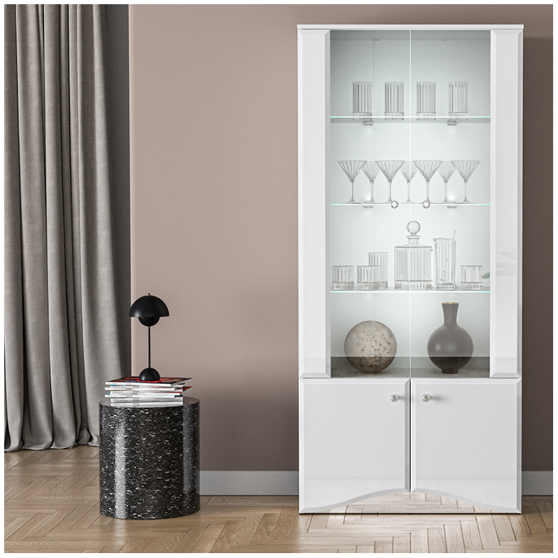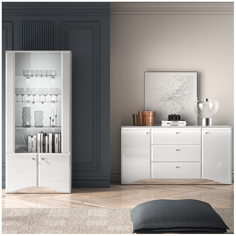 Glamour Display Cabinet in White Gloss with Crystal Handles