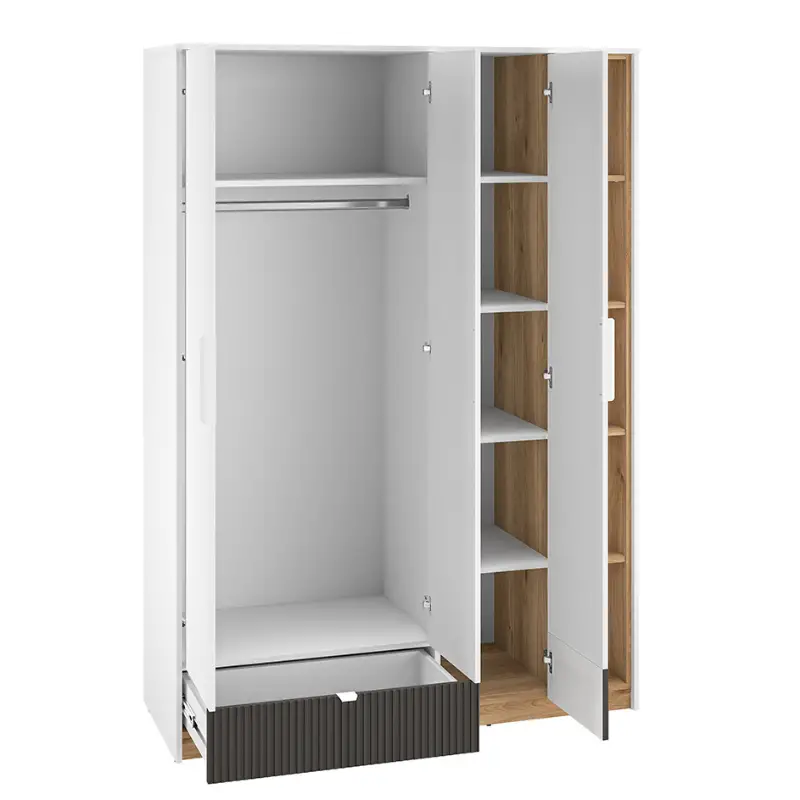 Modern Design Wardrobe – White / MDF Graphite / Castello Oak
