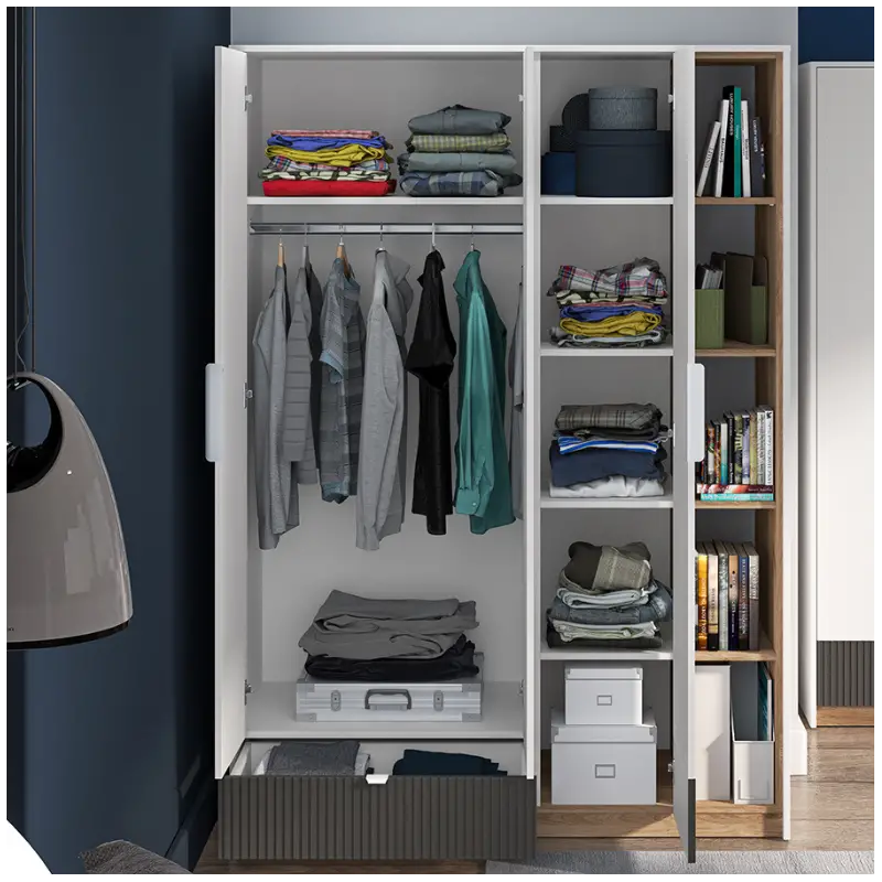 This wardrobe blends minimalist design with functional organisation. Its spacious interior provides room for hanging garments, folded clothing, and everyday essentials—perfect for bedrooms, apartments, and guest rooms.