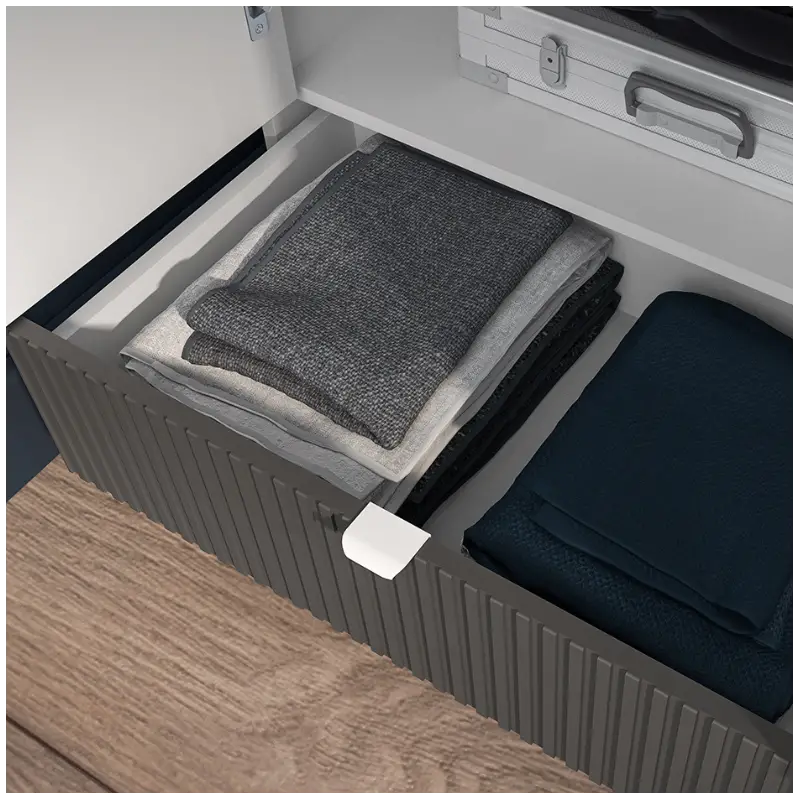 The wardrobe’s modern colour combination and practical design make it perfect for creating a clean, organised, and stylish bedroom space. Its sleek finishes complement Scandinavian, minimalist, and contemporary interiors.