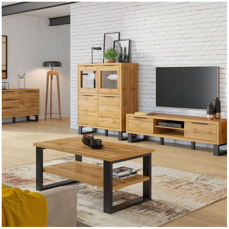 The design is a harmonising duet of authentic Wotan Oak with its beautifully visible wood grain and cool, durable metal accents. This contrast brings depth, style, and a modern edge to any living room. Whether you’re furnishing a loft apartment, a modern home, or a minimalist space, the HALLE coffee table adds both practicality and visual impact.