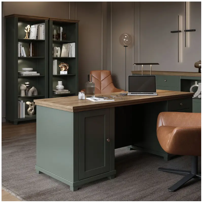 Looking for elegant desks in Ireland? Discover the EVA Collection, a sophisticated range that combines style, practicality, and everyday comfort. This beautifully designed Computer Desk features 1 door and 4 drawers in a stunning green & Lefkas oak laminate finish, making it perfect for home use or as a stylish Office Desk. It creates a functional, organised workspace in your living room, bedroom, or dedicated home office.