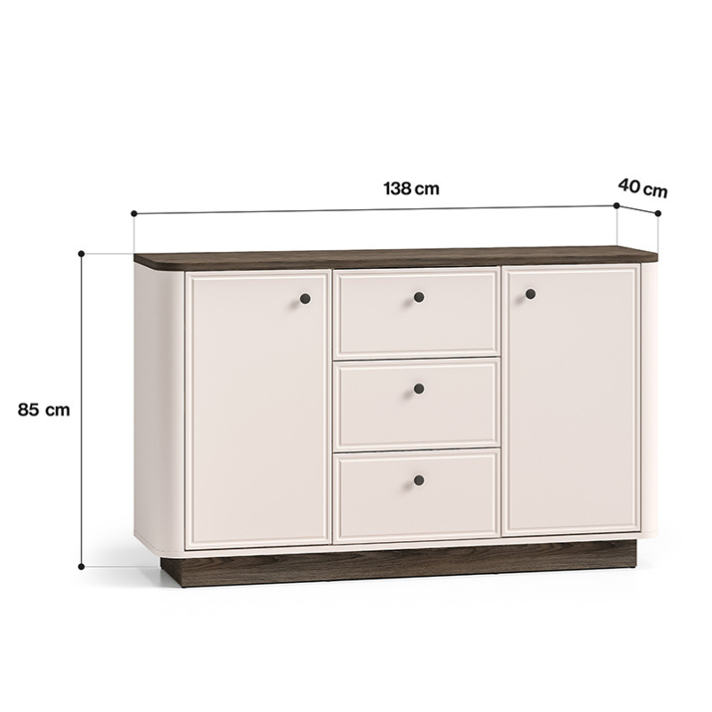 With its generous 138 cm width and smart internal layout, this SIDEBOARD CABINET offers plenty of storage without overwhelming your space. Its streamlined silhouette makes it easy to style with artwork, mirrors, lamps or decorative pieces on top.