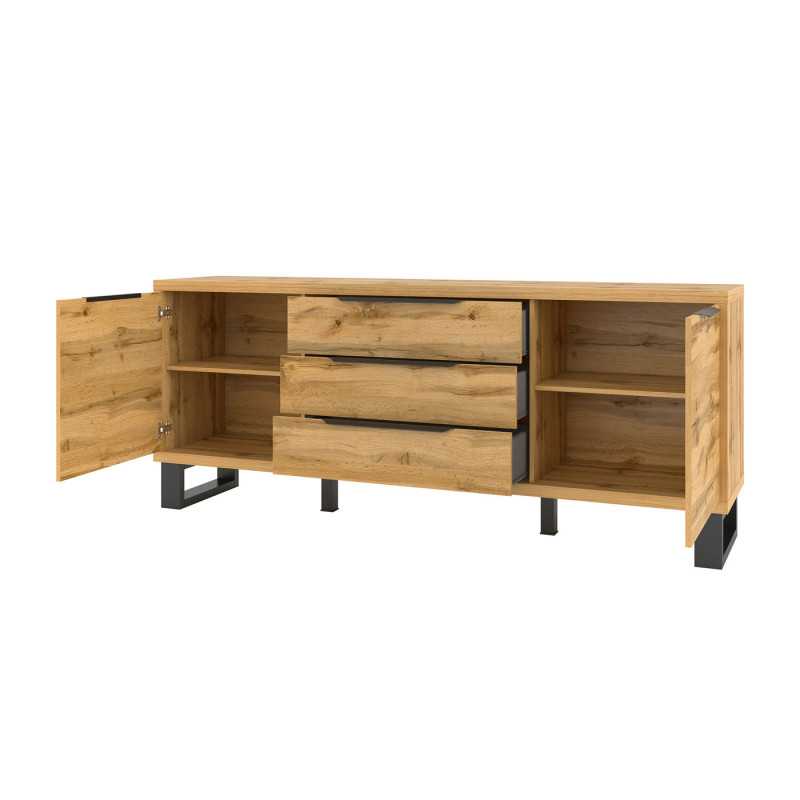 The Halle sideboard combines modern industrial styling with the natural warmth of Wotan oak, creating a piece that is both functional and visually striking. Designed for lovers of contemporary loft interiors, this sideboard offers generous storage while enhancing the character of your home.