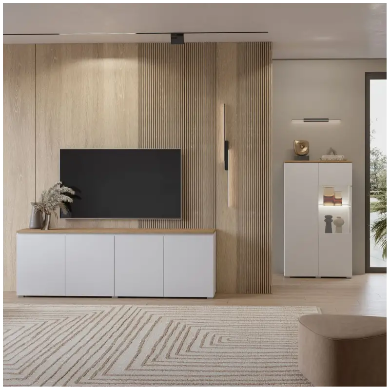 The Modo 4 door sideboard is a perfect choice for modern living rooms, combining contemporary white fronts with the natural warmth of Mauvella oak. Designed for both style and functionality, this elegant sideboard brings a light, spacious feel to your interior while offering generous storage for everyday living.