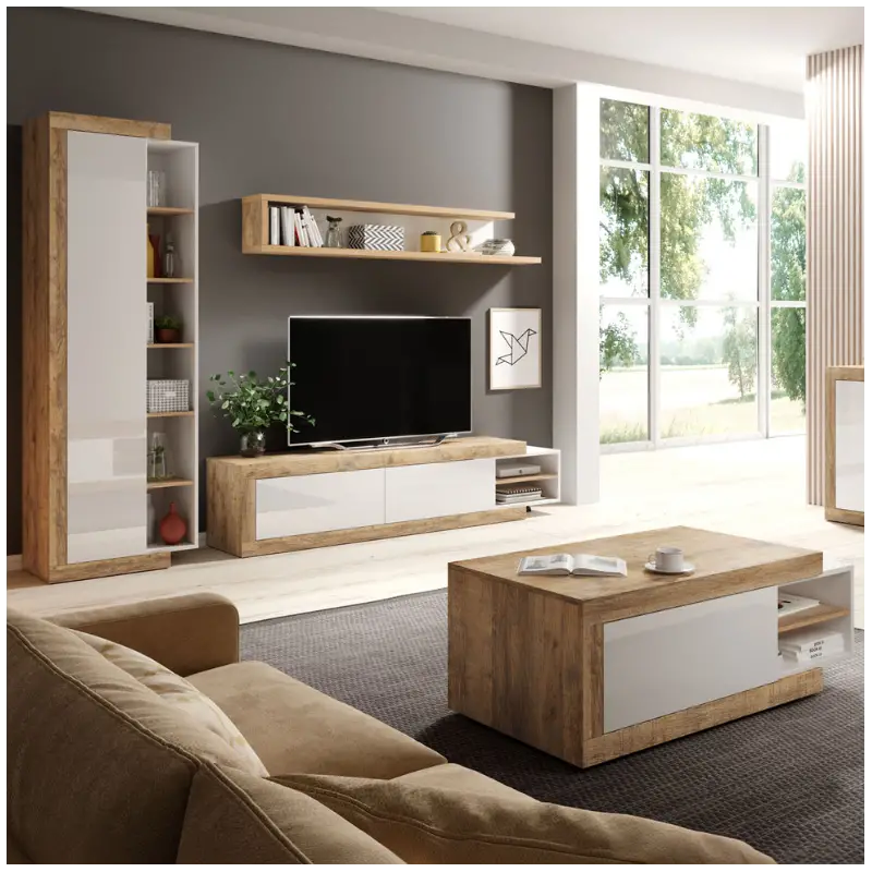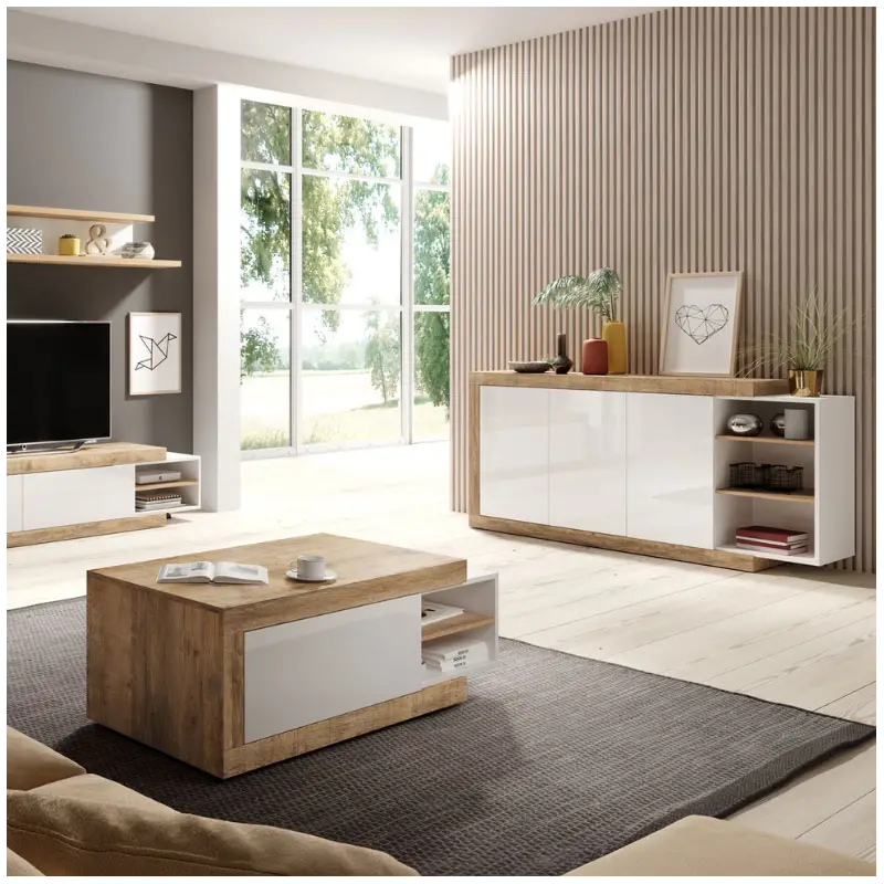 - Elegant white gloss and oak finish