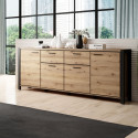 Made from high-quality materials, the AKTIV Sideboard combines the warmth of Taurus Oak with the sleek finish of Black Matt MDF, offering a contemporary look that complements a variety of interior styles. Its practical design includes four doors and two drawers, providing convenient storage solutions for both small and large items.