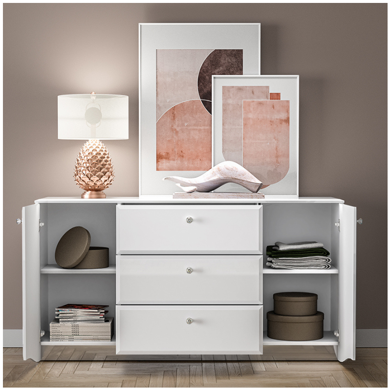 Discover the Glamour Collection today and bring home a luxurious white sideboard that perfectly complements your modern living space.