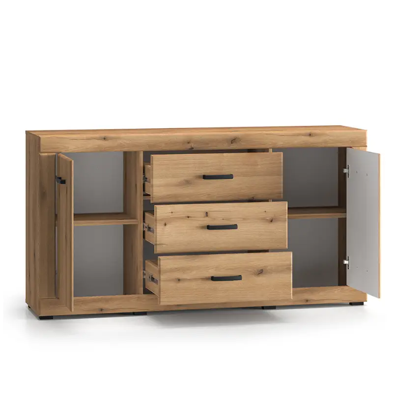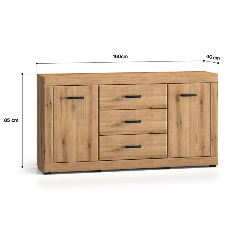- Material: Expertly crafted from a combination of premium oak and durable MDF Evoke Oak, this sideboard delivers a sturdy and timeless design with lasting durability.