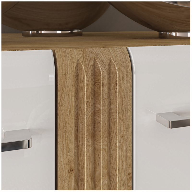 • Elegant White Fronts: The combination of white fronts and natural wood tones offers a refined, balanced look that suits any décor style, from contemporary to traditional.