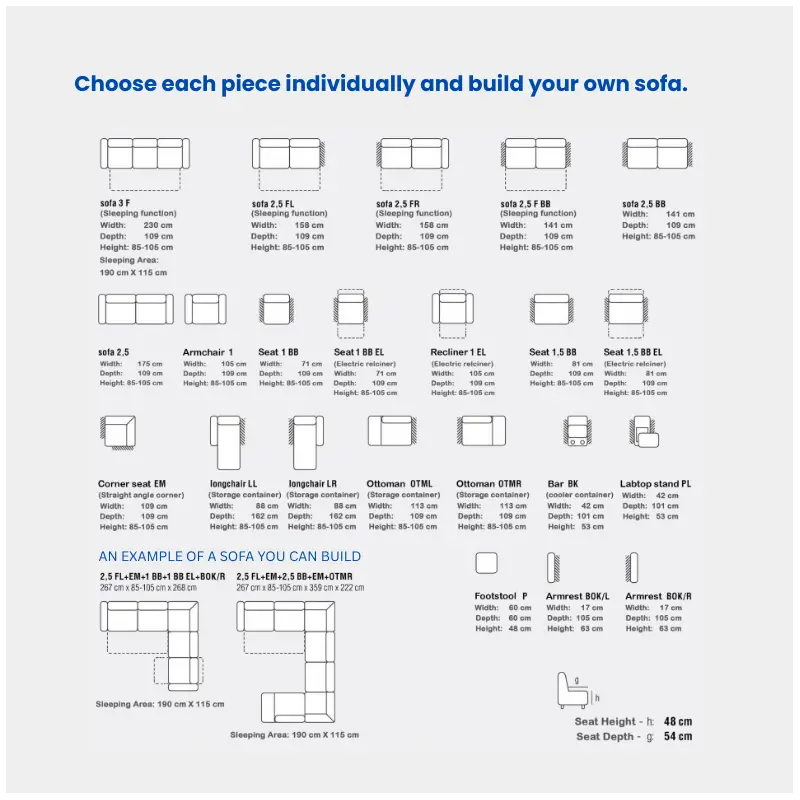 Choose from over 300 colour combinations in premium fabrics and leathers, offering exceptional design flexibility: