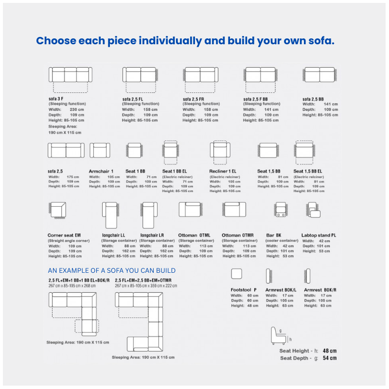 Note: Product images are for reference only. The listed price reflects the configuration shown, including the 2-seater sofa.