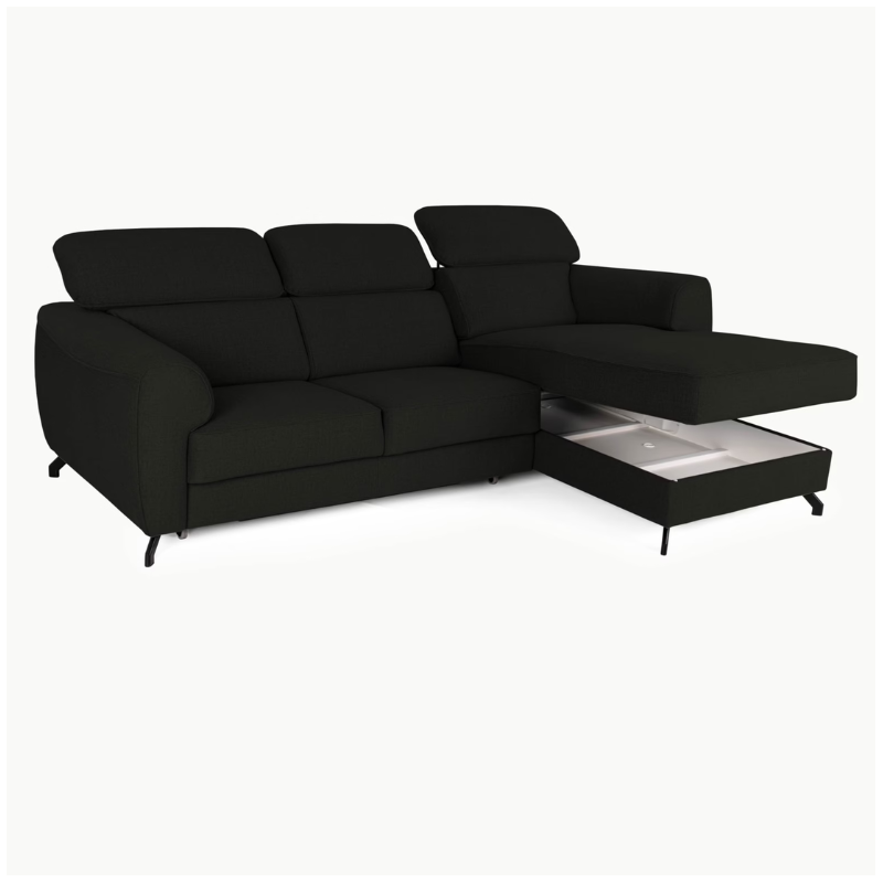 Compass Corner Sofa Bed in Black – Modern Corner Sofa Bed, Custom Design & Hidden Storage